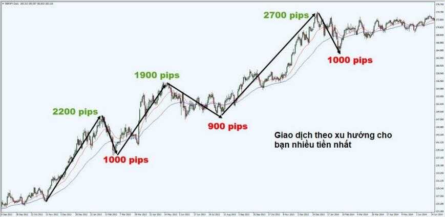 Khi giao dịch theo xu hướng, bạn sẽ có cơ hội lớn hơn do các dịch chuyển đẩy thường mạnh hơn so với các nhịp điều chỉnh. Điều này cho bạn một xác suất đúng và tỷ lệ sinh lời cao hơn so với việc giao dịch chống lại xu hướng.