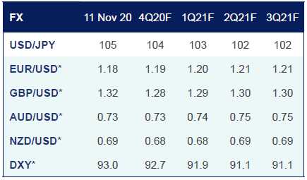Trong kịch bản cơ sở, chúng tôi vẫn giữ quan điểm rằng đồng USD sẽ tiếp tục suy yếu trong một vài quý tới. Tuy nhiên, cần chú ý rằng việc Quốc hội Mỹ nhiều khả năng bị chia rẽ sẽ giảm khả năng thông qua một gói kích thích kinh tế và đầu tư cơ sở hạ tầng với quy mô lớn trong tương lai, đồng nghĩa với dư địa cho đà giảm của USD sẽ có phần hạn chế hơn. Nhìn chung, những yếu tố gây áp lực suy yếu lên đồng USD trong thời gian vừa qua dự kiến vẫn sẽ tiếp tục duy trì, cụ thể: