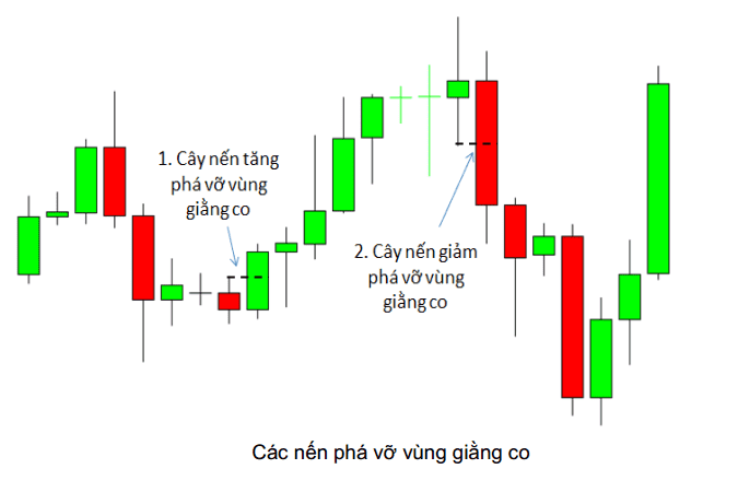 + Sự phá vỡ đó là thất bại, tức là quay đầu chạy về vùng giằng co.
