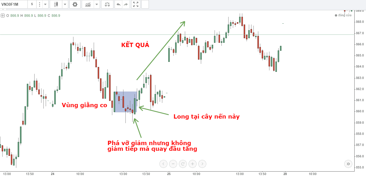 Còn đây là ví dụ thực tế trên chart phái sinh VN30F1M