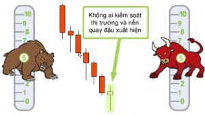 Bạn hãy xem hình dưới đây khi nến quay đầu xuất hiện trong một xu hướng giảm: