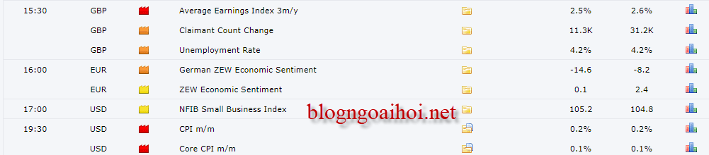- Average Earning Index là tỷ lệ thay đổi của thu nhập bình quân. Cái này càng cao càng tốt vì nó phản ánh thu nhập người lao động gia tăng. Chỉ số này cũng được dự báo la 2.5% thấp hơn kỳ trước là 2.6%. Tức là đang dự báo xấu cho GBP.