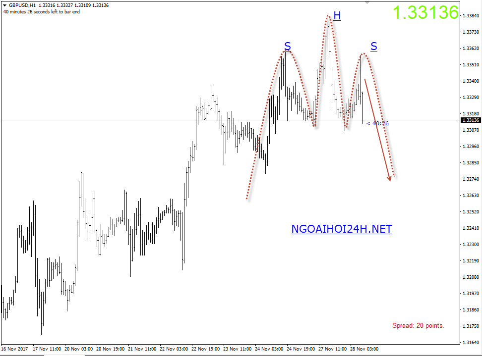 Bảng Anh 28/11 – GBPUSD có mô hình vai đầu vai.