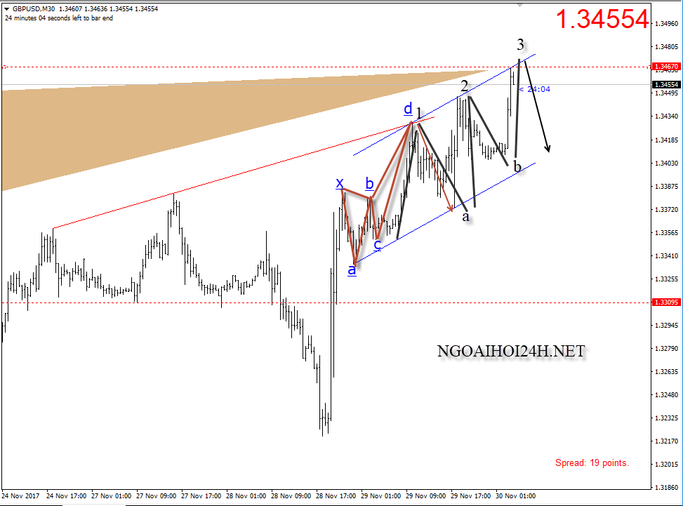 Bài phân tích của chúng tôi ngày hôm qua cho cặp bảng anh ” Bảng Anh 29/11 – GBPUSD có harmonic cho bán lướt ” đã phát huy tốt hiệu quả. Khi bán được gần đỉnh ở 1.3425 về đáy 1.3375 cũng rơi được tầm 50pip.