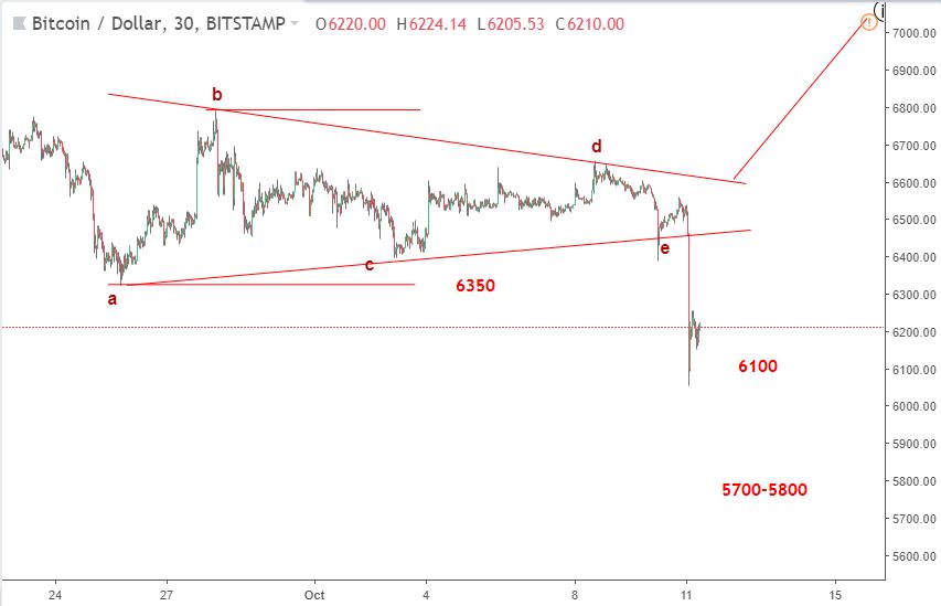 Giá giảm mạnh dưới mức $6350 và chạm xuống dưới ngưỡng $6100. Xu hướng thoái lui hiện tại có thể tiếp tục là $6350 nhưng áp lực giảm có thể sẽ đẩy giá xuống để kiểm tra ngưỡng hỗ trợ $5700-$5800 lần thứ tư trong năm nay. Việc phá vỡ nhanh dưới đây có thể thấy giá chạm mức $5000. Trừ khi sự phục hồi tăng nhanh xảy ra trở lại vùng tam giác, những con gấu tiếp tục chiến thắng.