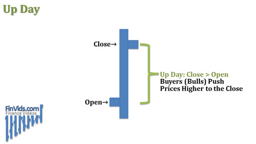 Khi giá đóng cửa cao hơn giá mở cửa của thanh thì thanh giá đó được gọi là ngày giá tăng hay thanh tăng.