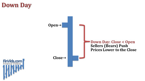 Nếu giá đóng cửa thấp hơn giá mở cửa của thanh thì ngày đó ngày được tổng kết là ngày giá giảm hay thanh giảm.