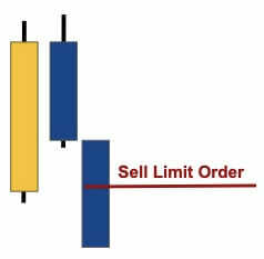 Hoặc bạn có thể giao dịch như sau, đợi cho giá đóng cửa bên dưới mức giá thấp nhất của nến đầu tiên rồi, lúc đó bạn có thể đặt sell limit ở mức giá đóng cửa của nến 1 như hình bên dưới: