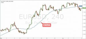 VWMA là một chỉ báo kỹ thuật đơn giản được sử dụng để phân tích khối lượng. VMWA là đường trung bình động không chỉ dựa trên giá, mà còn dựa vào khối lượng để tổng hợp nên. Hình bên dưới là chỉ báo VWMA: