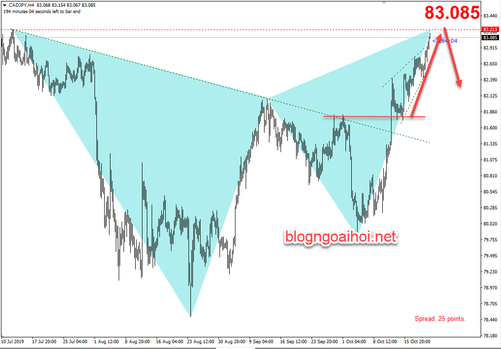 Chiến lược giao dịch CADJPY 22/10 tham khảo : Bán 83.20, Stop 83.5, TP 82.5-82.