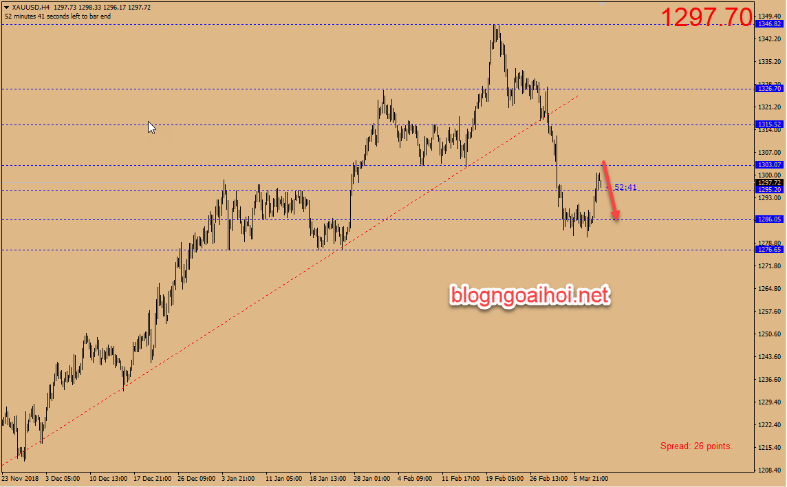 Chiến lược giao dịch vàng ngày 11 tháng 3 : Bán 1301-1303 mục tiêu 1290.