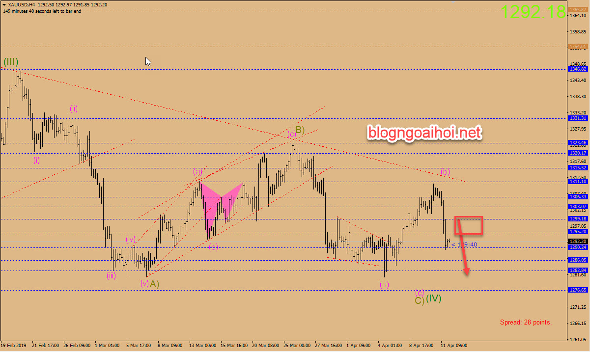 Chiến lược giao dịch Vàng ngày 12 tháng 4 : Canh bán quanh vùng 1296-1299 mục tiêu 1280.