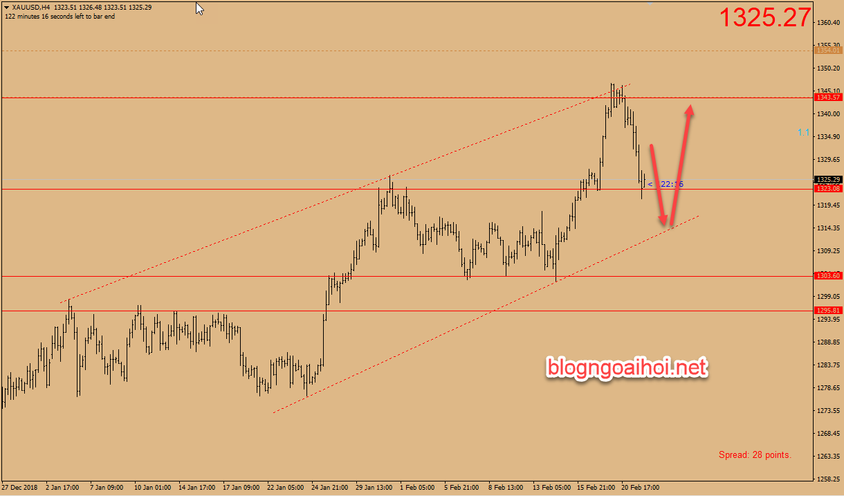 Chiến lược giao dịch vàng ngày 22 tháng 2: Bán quanh 1330 mục tiêu 1320. Canh mua ở quanh 1318 mục tiêu 1340.