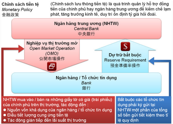Dự trữ bắt buộc là phần tiền gửi mà các ngân hàng thương mại phải đưa và dự trữ theo luật định. Phần dự trữ này được gửi vào tài khoản chuyên dùng ở ngân hàng trung ương và để tại quỹ của mình, với mục đích góp phần bảo đảm khả năng thanh toán của Ngân Hàng Thương Mại và dùng làm phương tiện kiểm soát khối lượng tín dụng của ngân hàng này. Khi tăng tỷ lệ dự trữ bắt buộc sẽ có tác dụng làm giảm khả năng cho vay và đầu tư của ngân hàng thương mại từ đó giảm lượng tiền trong lưu thông, góp phần làm giảm cầu tiền để cân bằng với sự giảm cung xã hội. Trong trường hợp giảm tỷ lệ dự trữ bắt buộc, khả năng mở rộng cho vay của Ngân Hàng Thương Mại sẽ tăng lên, dẫn đến sự gia tăng lượng tiền trong lưu thông, góp phần tăng cung xã hội để cân đối tăng cầu về tiền.