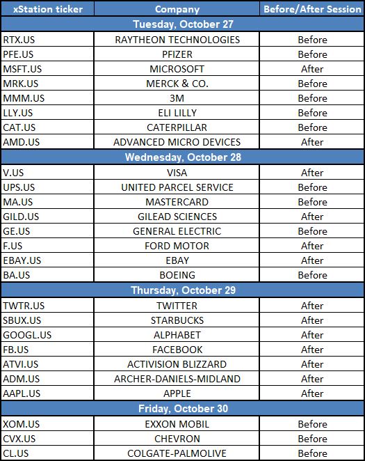 Các công ty Mỹ sẽ báo cáo thu nhập trong tuần này. Nguồn: Bloomberg, XTB