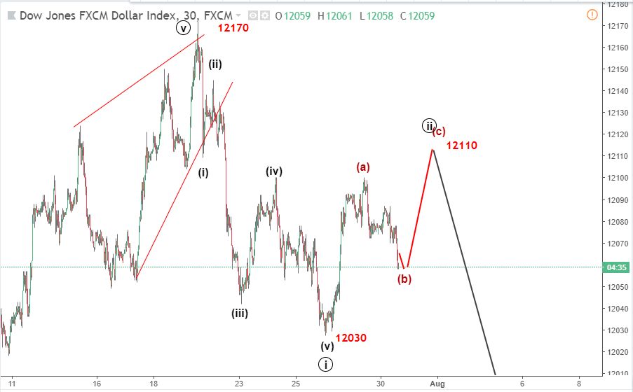 Dollar Index 31/7- Đồng đô la đang quay trở lại mức 12050. Dường như sự suy giảm là quá sớm và giá sẽ tăng một lần nữa trước khi một động thái giảm giá lớn. Phân tích sóng Elliott 31 tháng 7 của Dollar Index sau đây xem xét những gì có thể xảy ra tiếp theo.