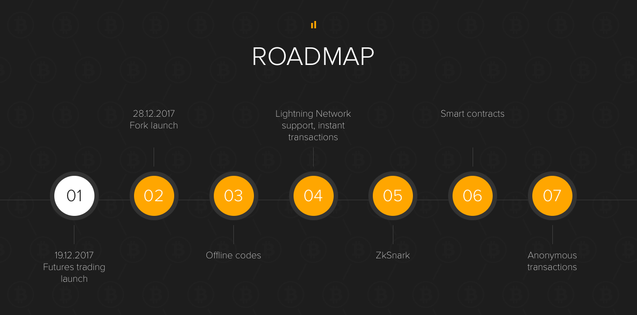 Tổng cộng có 8 sàn giao dịch được liệt kê là hỗ trợ chính thức của đợt fork. Lộ trình của dự án bao gồm các tính năng như hỗ trợ Lightning Network, hợp đồng thông minh, và cuối cùng là giao dịch ẩn danh.