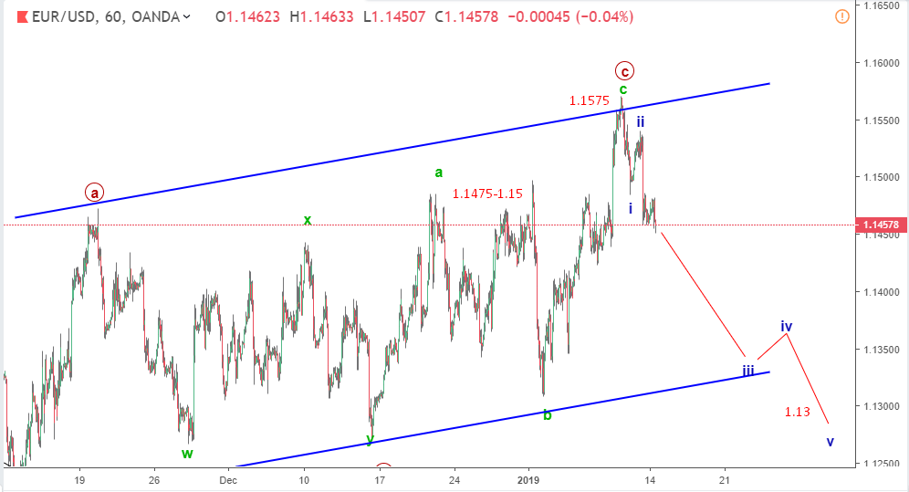 Dự báo EURUSD 15/1- EURUSD đang giao dịch dưới 1,15 sau khi trở về từ 1,1575 tuần trước. Nó sẽ tiếp tục giảm điểm trong tuần này? Sau đây cung cấp cái nhìn sâu sắc dựa trên lý thuyết sóng Elliott.