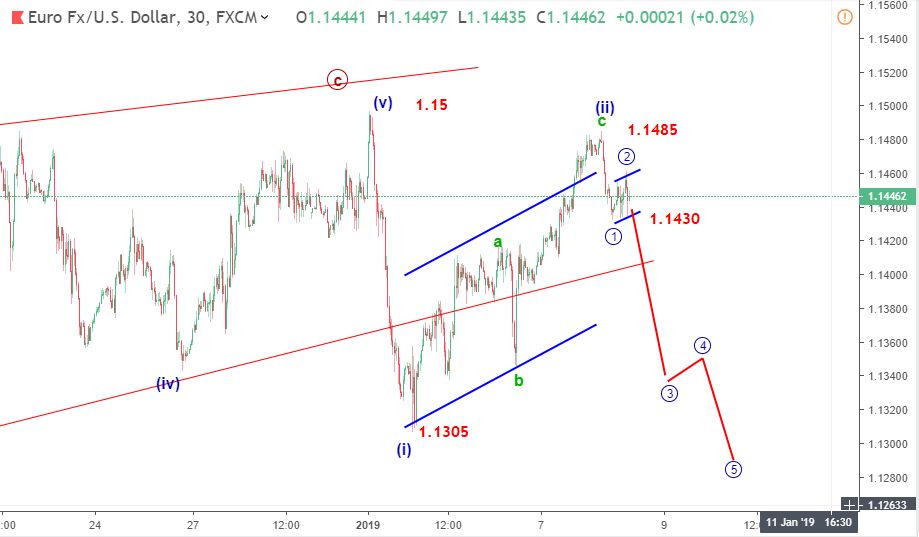 Dự báo EURUSD 8/1- EURUSD đã giảm xuống vào đầu ngày hôm nay, giảm khoảng 50 Pips khi cuộc đàm phán thương mại Mỹ-Trung tiếp tục. Sau đây cung cấp cái nhìn sâu sắc dựa trên lý thuyết sóng Elliott.