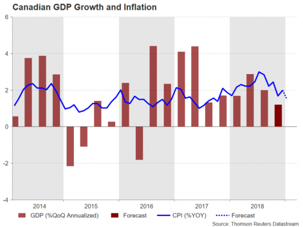 Các số liệu GDP đến cuối tuần được dự đoán sẽ xác nhận bức tranh tăng trưởng vừa phải ở Canada. Tăng trưởng hàng năm trong ba tháng cuối năm 2018 được dự báo ở mức 1,2% theo quý, chậm lại từ mức 2,0% trước đó. Tính theo tháng, tăng trưởng GDP được dự báo sẽ không thay đổi trong tháng 12.