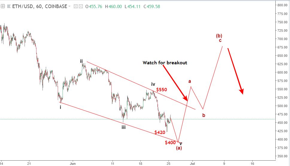 Ethereum 26/6 – Dự báo sóng elliott wave kết thúc điều chỉnh giảm.