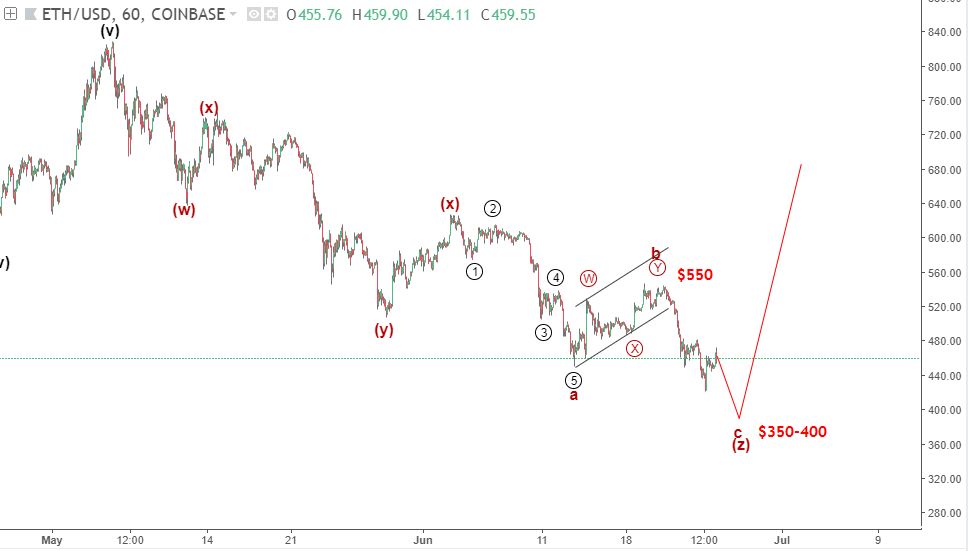 Ethereum có dự báo mô hình điều chỉnh triple zigzag trong thời gian dài. Cũng giống như trong BTC và những altcoin khác giá có thể tiến gần đến cuối giai đoạn giảm giá. Điều này sẽ đến vào cuối nửa đầu năm nay. Nếu bạn nhớ, một cái gì đó tương tự đã xảy ra năm ngoái. Nửa đầu năm 2017 bị chi phối bởi sự điều chỉnh giảm trong khi nửa cuối (đặc biệt là từ tháng 8) đã chứng kiến giá tăng mạnh để tạo ra mức cao nhất mọi thời đại.