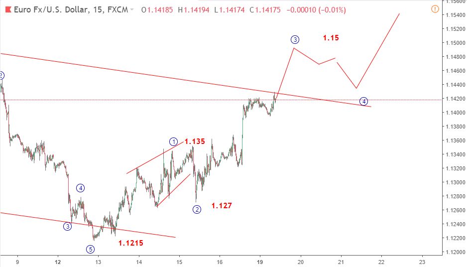 Euro 20/11- EURUSD đã tăng vượt 1.14 sau khi tăng giá trong tuần trước. Liệu giá sẽ tăng tiếp? Sau đây cung cấp thông tin chi tiết kỹ thuật dựa trên lý thuyết sóng Elliott.