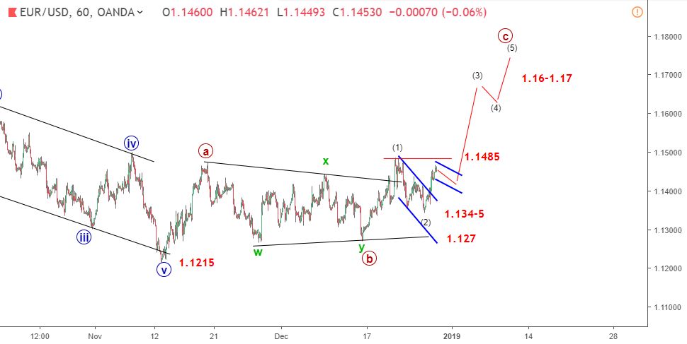 EURUSD 28/12- EURUSD đang trở lại mức 1,15 sau khi được hỗ trợ lặng lẽ ở mức 1.134-5. Động thái tăng giá sẽ tiếp tục? Sau đây cung cấp cái nhìn sâu sắc dựa trên lý thuyết sóng Elliott.