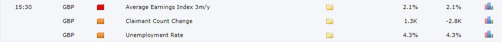 Hôm nay thì các cặp liên quan đến GBP sẽ đón chuỗi tin Nonfarm phiên bản của nước Anh. Nhìn qua thì thấy Thu nhập trung bình theo giờ và tỷ lệ thất nghiệp được dự báo không có sự thay đổi . Nhưng thay đổi trợ cấp thất nghiệp – Claimant Count Change được dự báo tăng lên đây là dự báo xấu cho đồng GBP.