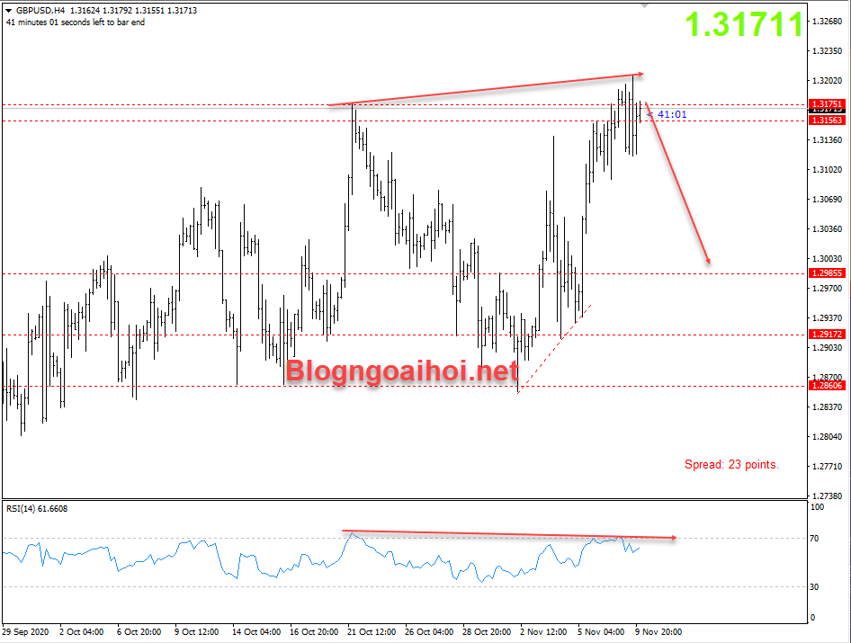 Chiến lược tham khảo : GBPUSD 10/11- Bán quanh 1.3180, Stop 1.3220, TP 1.30.