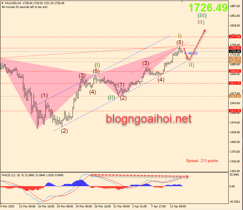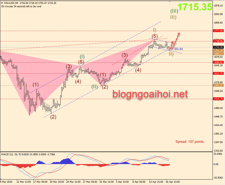 Chiến lược tham khảo : Vàng 17/4- Mua 1708-1710, Stop 1703, TP 1720-1740.