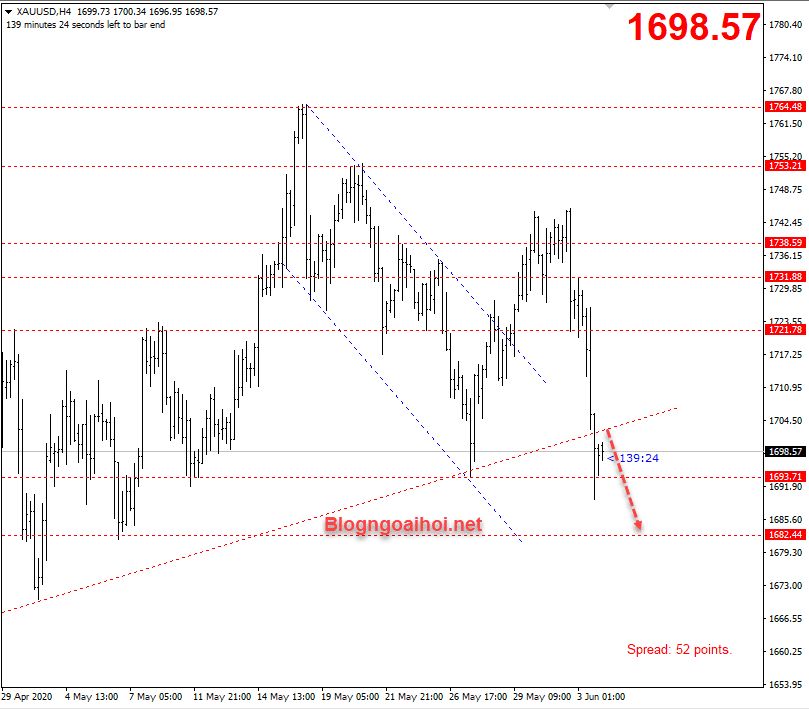 Chiến lược tham khảo : Vàng 4/6 – Bán 1701-1703, Stop 1706, TP 1692-1682.