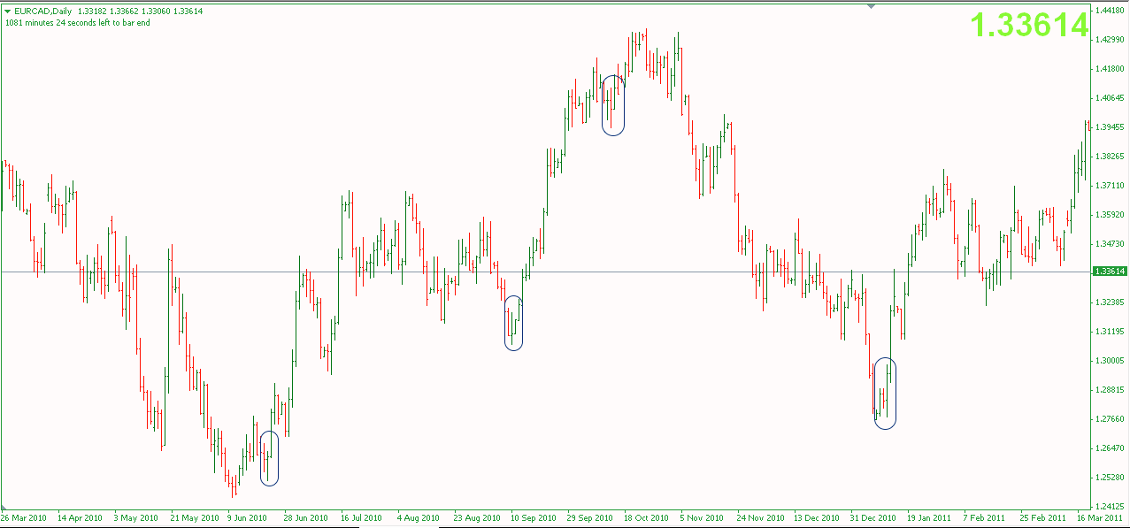 Tất cả những đảo chiều quan trọng xảy ra chỉ khi 1 bar đi vào ít nhất là 50% bar trước đó ( nhiều khi đi hơn).
