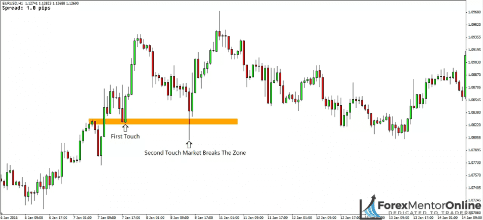 Retest lần đầu: nếu muốn cú trade có được hiệu quả bạn chỉ nên giao dịch lần chạm vùng retest đầu tiên, nếu giá quay lại vùng này hai lần trở lên, nó cho thấy đà giá (theo hướng breakout) đã mất.