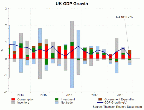Kể từ cuộc họp tháng hai, dữ liệu kinh tế đã được trộn lẫn. Tăng trưởng GDP đã phục hồi lên + 1,4% so với cùng kỳ trong tháng 1, từ mức yếu + 1% trong tháng 12. Trên cơ sở hàng quý, tăng trưởng GDP đã giảm xuống + 0,2% trong quý 4/2018, từ mức + 0,6% trong quý trước.