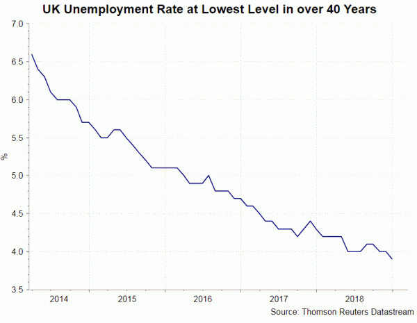 Biểu đồ dưới đây cho thấy đầu tư kinh doanh đã giảm sau khi đạt mức cao nhất trong quý 4/2017. Trong khi đó, số giờ làm việc không ngừng tăng lên. Điều này có lẽ phản ánh quyết định rằng các tập đoàn đã trở nên thận trọng hơn trong đầu tư vốn do sự không chắc chắn của Brexit. năng suất sau đó được thay thế bằng lực lượng lao động cao hơn có thể được giảm xuống một cách kịp thời hơn. Mặc dù hồi phục nhẹ vào tháng 1,