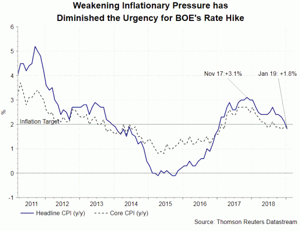 Tại cuộc họp tháng 2, ngân hàng trung ương đã nhắc lại sự thiên vị tiền tệ thắt chặt và lưu ý rằng bất kỳ sự tăng lãi suất nào sẽ chỉ diễn ra sau khi Brexit rõ ràng. Chúng tôi hy vọng nó sẽ tái khẳng định lập trường này trong tháng này. Trì hoãn thời gian rời khỏi EU có nghĩa là kéo dài sự không chắc chắn. Điều này đã làm tổn thương niềm tin của người tiêu dùng và đầu tư kinh doanh.
