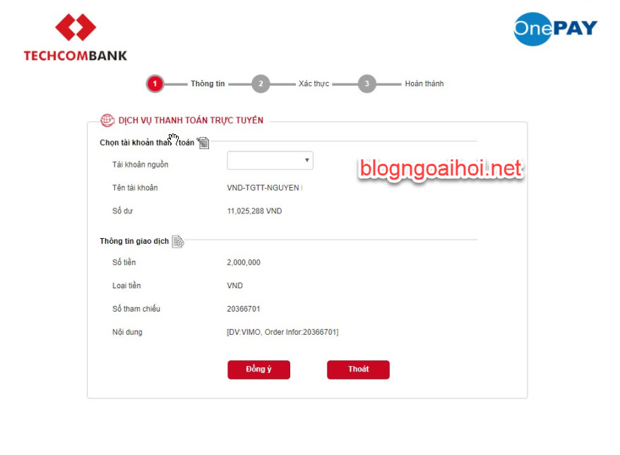 Các bước tiếp theo là bạn đăng nhập bằng tài khoản Internet Banking của Ngân hàng và gửi yêu cầu thanh toán.