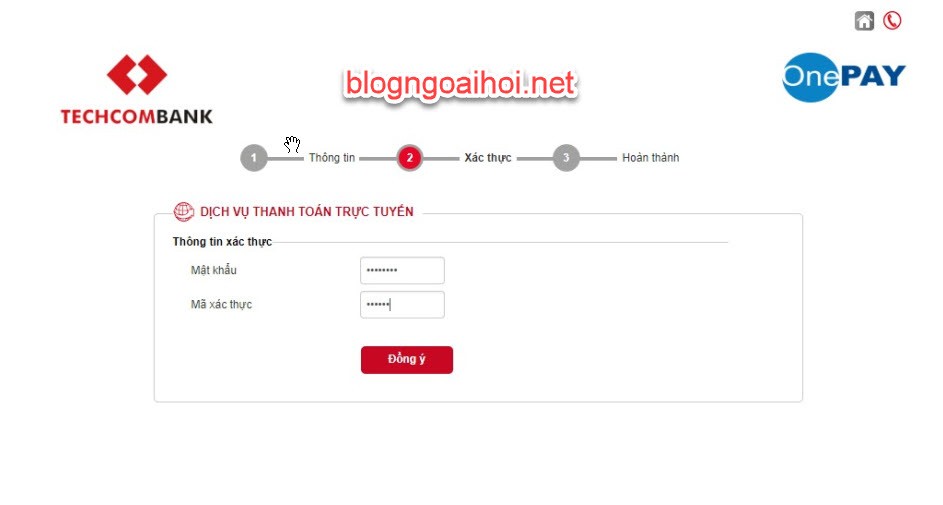 Mã xác thực OTP sẽ được gửi qua số điện thoại mà bạn đăng ký với ngân hàng,bạn hãy nhập mã này và chọn “Đồng ý”.