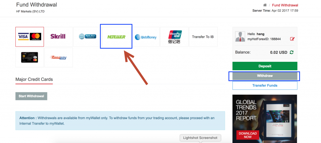Hướng dẫn cách rút tiền từ HotForex về ví điện tử Neteller