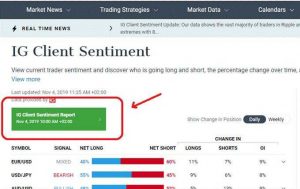 Để làm cho việc phân tích dễ dàng hơn, DailyFX cung cấp một báo cáo toàn diện về các thị trường chính, cho phép bạn quan sát chỉ báo tâm lý thị trường này so với đồ thị giá. Việc bạn cần làm là click vào mục “IG Client Sentiment Report” màu xanh lá cây như hình bên dưới.