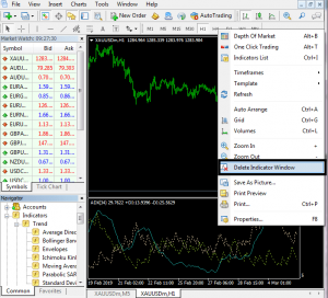 Nếu không thích sử dụng chỉ báo đó nữa bạn cũng làm tương tự, nhấn chuột phải vào bên chỉ báo chọn “Delete indicator window”