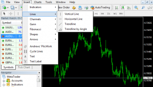 3.3 Insert: Một trong những điểm mạnh của MT4 hỗ trợ bạn rất nhiều công cụ phân tích kỹ thuật.