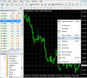 Chart Window: là mở màn hình đồ thị của cặp tiền tệ hay sản phẩm mà bạn đã chọn khi nhấn chuột phải vào đó