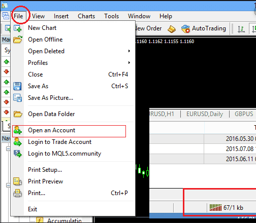 Open an Account: Mở một tài khoản MT4 mới. Ngoài cách mở tài khoản MT4 từ trong tài khoản quản lý, thì bạn cũng có thể mở tài khoản MT4 trực tiếp từ phần mềm MT4.