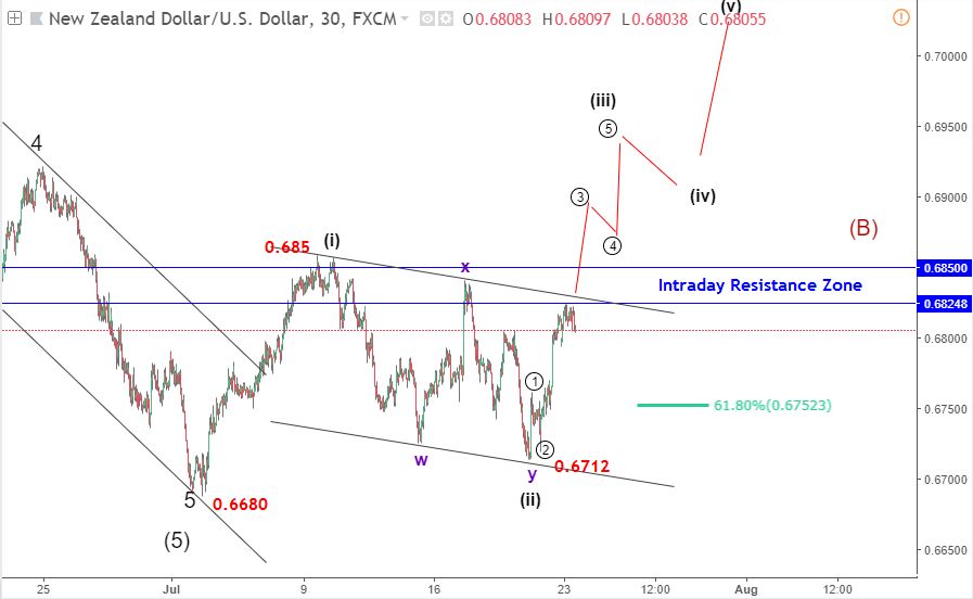 Kiwi 24/7- NZDUSD tăng điểm tuần trước như mong đợi. Liệu giá sẽ tăng thêm trong tuần này? Sau khi phân tích sóng Elliott 24 tháng 7 NZDUSD cho những hiểu biết kỹ thuật dựa trên lý thuyết sóng Elliott.