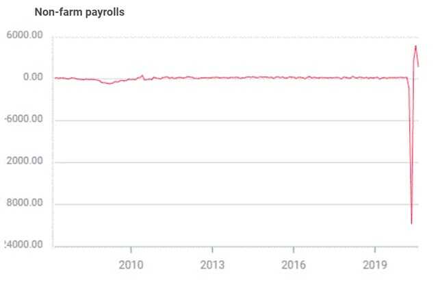 Sự sụp đổ trong thị trường việc làm là một trong những câu chuyện được quan tâm nhất hiện nay. Hơn 22 triệu người Mỹ đã mất việc trong tháng 3 và tháng 4 theo tính toán được công bố trong dữ liệu Non-Farm Payrolls. Khoảng 42%, nghĩa là chỉ khoảng 9 triệu người được đi làm trở lại. Chịu ảnh hưởng nặng nề nhất là những người làm công ăn lương theo giờ và tầng lớp thu nhập thấp.