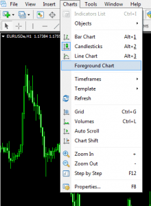 Làm ẩn đường trend line bên dưới mô hình nến bằng cách bấm Foreground trong thẻ Chart, hoặc bấm phím tắt ALT + C + F.