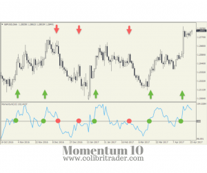 Chỉ báo Momentum là một chỉ báo kỹ thuật có cách thức sử dụng khá đơn giản, thuộc nhóm chỉ báo dao động. Chỉ báo này so sánh giá đóng cửa của nến gần đây nhất với giá đóng cửa của nến trước đó. Nó nói lên mối tương quan của giá hiện tại so với giá của phiên giao dịch trước đó.
