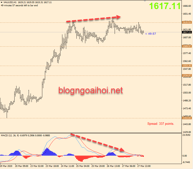 - Giá tạo ra đỉnh sau thấp hơn, nhưng chỉ báo dao động tạo ra đỉnh sau cao hơn.
